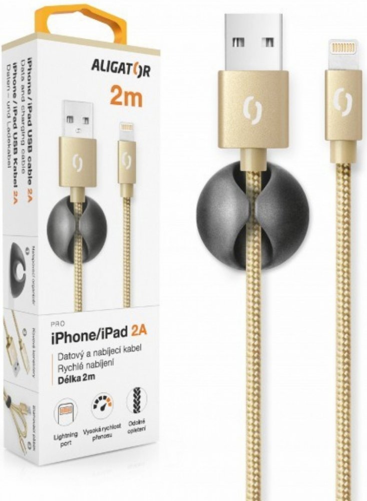 Aligator DATKP23 datový, PREMIUM 2A, Lightning, 2m, zlatý
