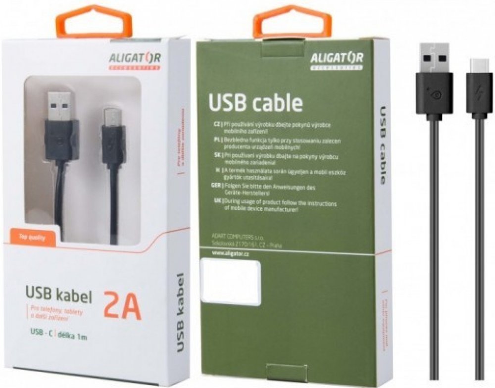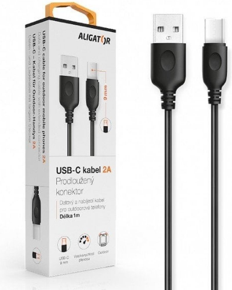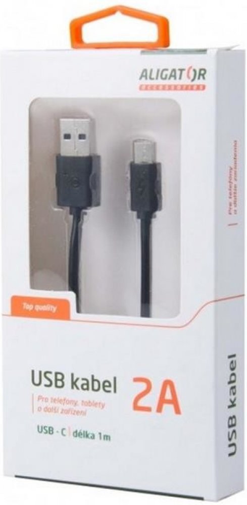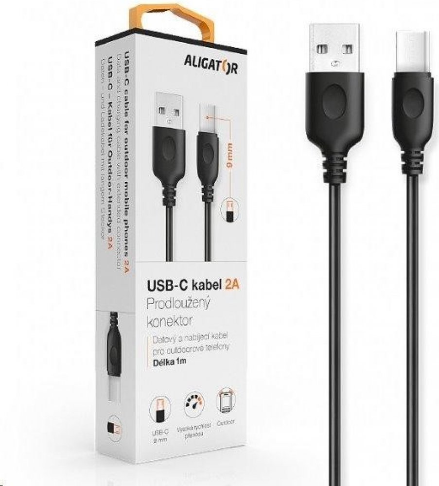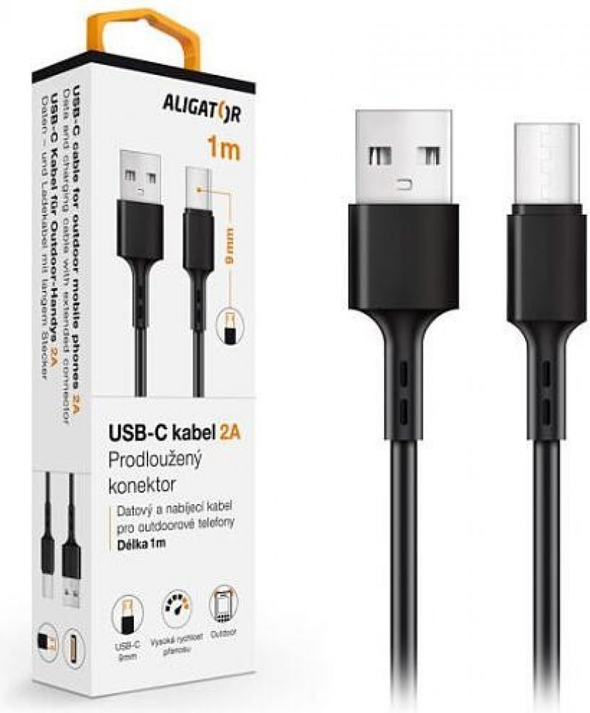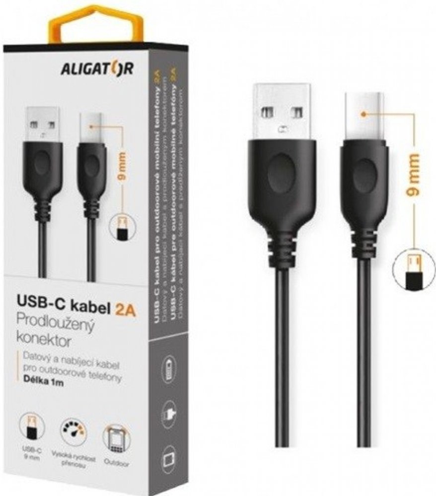 Aligator DKAC82BK USB-C s prodlouženým konektorem, 2A, 1m