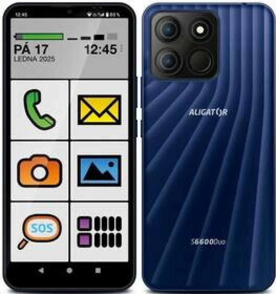 Telefon Aligator S6600 Senior je dostupný ve 2 barvách – modrá metalíza a elegantní černá.