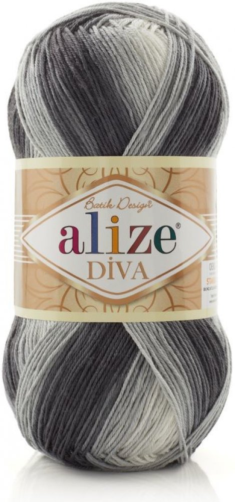 Alize příze Diva batik 1900 Černá, šedá, krémová