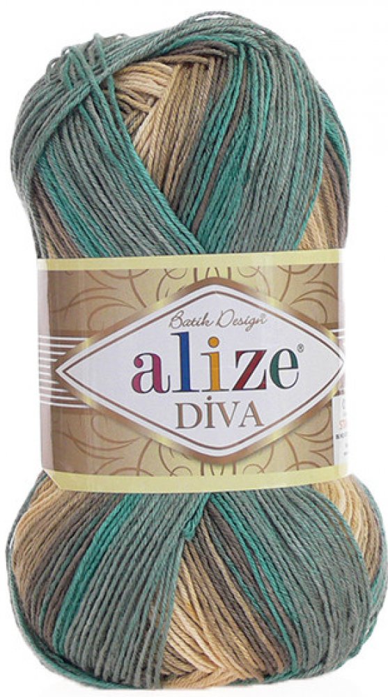 Alize Příze Diva Batik 3307 - odstíny zelené, béžové,šedé