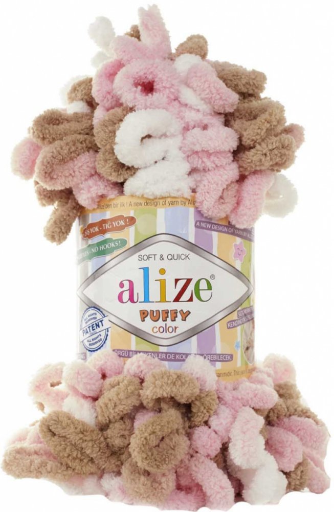 Alize příze Puffy color 6046 růžová, bílá a karamelová