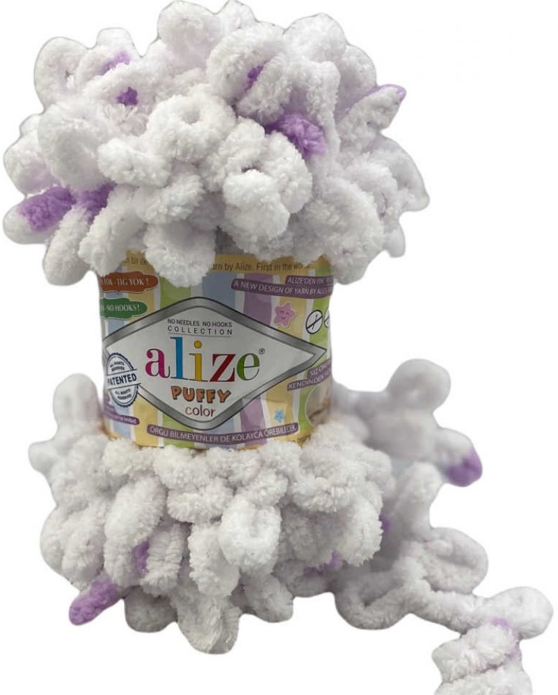 Alize příze Puffy color 6470 bílá se světle fialovou