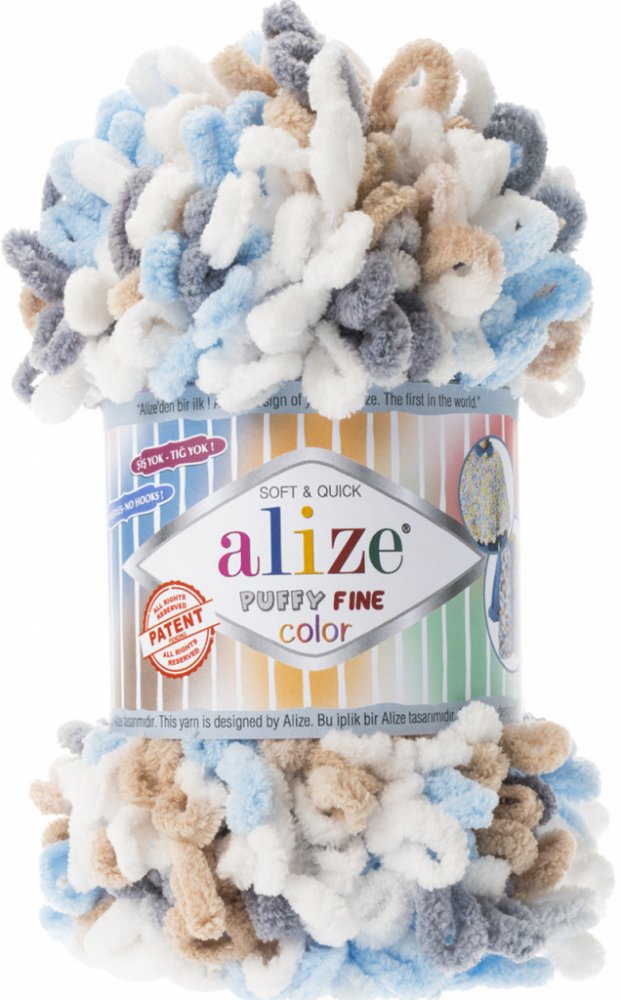 Alize Příze Puffy FINE color 5946 modro-šedo-hnědo-bílá
