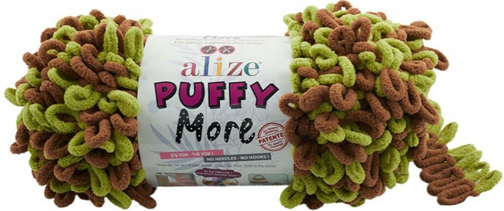 Alize příze Puffy More 6545 světle zelená a hnědá