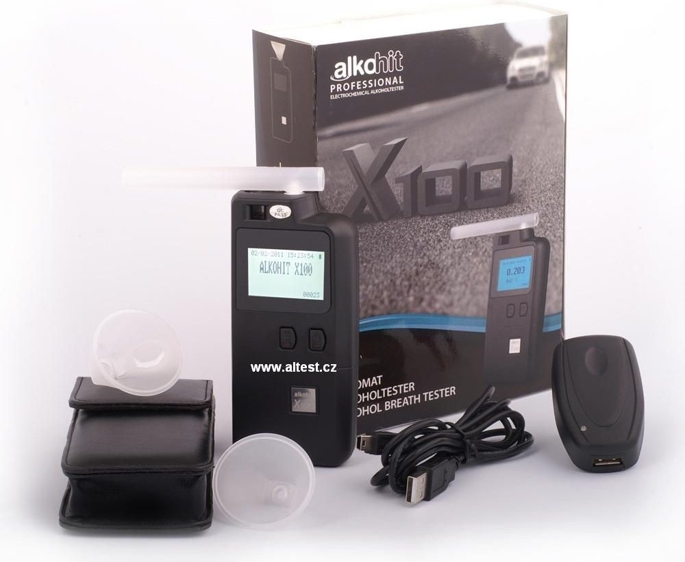 Pokročilá technologie měření, použita v Alkohit X100 umožňuje kontrolu samotného foukání, odběr vzorků, zamykající kontrolní systém, pokud na snímači jsou zbytky alkoholu z předchozího měření a dvoustupňový elektrochemický senzor s platinou a ultra-moderní procesor. Víceúčelovost tohoto jedinečného alkohol testeru je rozšířená ještě dále tím, že nabízí volitelný Bluetooth modul pro bezdrátový tisk, který umožňuje použití termotiskárny pro výtisk posledních 4000 měření. Jedním slovem je to alkohol tester pro profesionály. Standardní jednotky měření alkoholu promile ‰, ale na přání může být kalibrován také v mg / l nebo jiných měřítkách. Náustky Alkohit X5 mají zámek, který brání zpátečnímu toku vzduchu z testeru. V současné době to je důležité vzhledem k různým infekčním chorobám: ptačí chřipky, sepse, atd. Tato výhoda je důležitá pro firmy, aby systematicky denně kontrolovat zaměstnance a mít jistotu, že nemocný zaměstnanec neinfikuje další osoby.