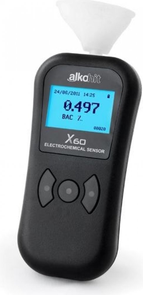 Alkohit X60 je cenově nejatraktivnější produkt v elektrochemické řadě alkohol testerů Alkohit ®, určených pro firmy. Alkohit X60 se používá k provedení měření pomocí nálevkové čepici nebo náustku. Toto zařízení je určeno speciálně pro ty, kteří potřebují určit hladinu alkoholu nejen pro osobní použití, ale také ke kontrole pracovníků v malých firmách.
