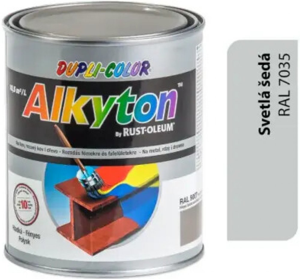 Alkyton lesklý je vysoce kvalitní alkydová barva s vynikající odolností, pružností, odolností vůči oděru a rychlým zasychánáním (i při teplotách do +5°C). Hlavní přerdností však je vysoká antikorozní schopnost a možnost natírat i na již zrezavělý a silně zrezavělý kov.