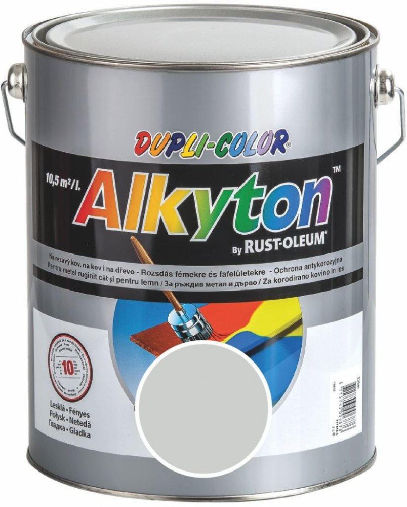 ALKYTON lesklý kryje v 1vrstvě ve všech odstínech. Účinné antikorozní pigmenty vytvářejí dlouhodobou antikorozní ochranu. Výrobek má velmi dobrou přilnavost i na zkorodovaný povrch po ručním očištění. Použitá rozpouštědla dodávají výrobku vynikající slévatelnost- při aplikaci štětcem lze dosáhnout vzhled obdobné kvality jako při stříkání. Modifikace alkydových pryskyřic uretany dodává výrobku dlouhodobou barevnou stálost a podstatněprodlužuje lesk.