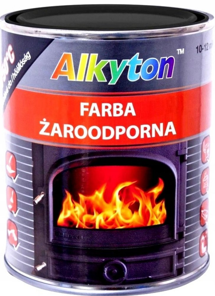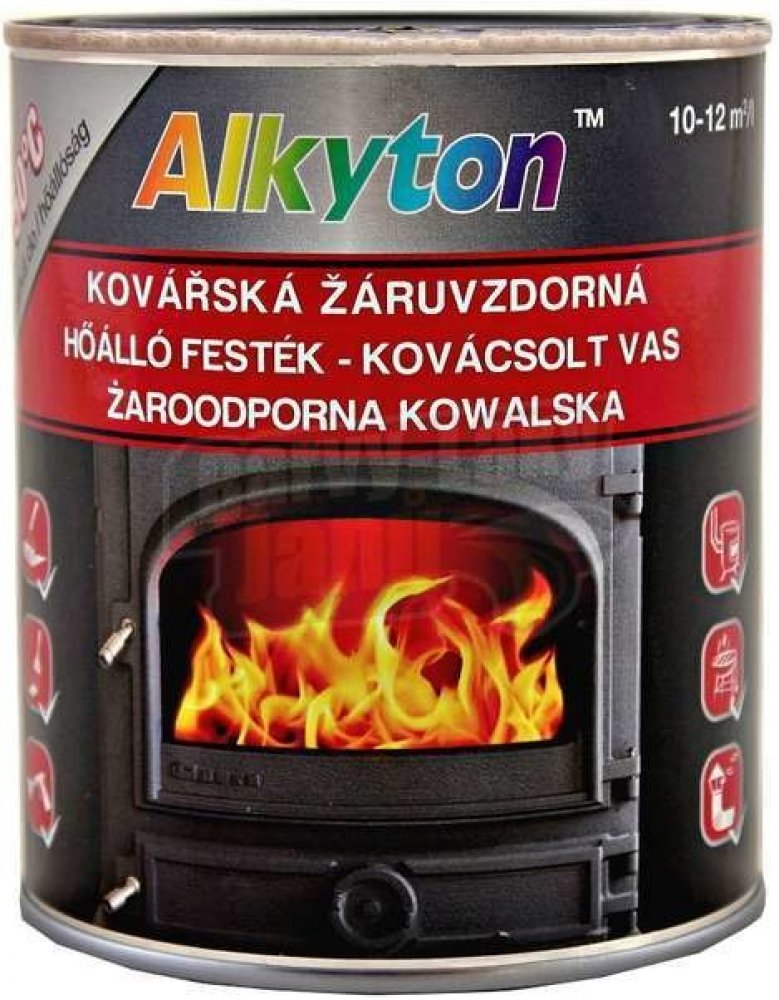 Alkyton – Žáruvzdorná barva Kovářská černá, je určena pro aplikace na novou nebo dobře očištěnou ocel, železo a litinu, na mírně zkorodovaný povrch, nebo na staré fungující nátěry žáruvzdorných barev. Uplatní se především při použití na kamnech, krbech, kouřovodech, zahradních grilech, výfucích, kotlech a všude tam, kde je zapotřebí odolnost proti vysokým teplotám a to v interiéru nebo chráněném exteriéru. Díky plnění speciálním hrubším pigmentem, má navíc vysoce dekorativní vzhled.
