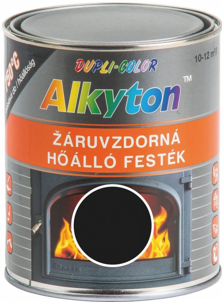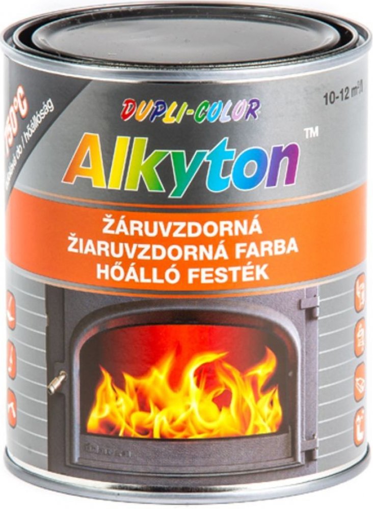 Alkyton - Žáruvzdorná barva Kovářská černá je teplotě odolná barva na bázi silikonem modifikované alkydové pryskyřice. Nátěr žáruvzdornou barvou odolává běžně teplotám do 650°C a vydrží zatížení až do 750°C.