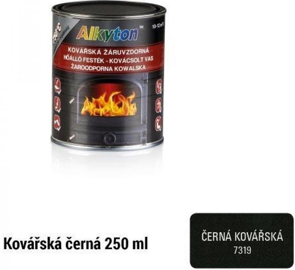 Alkyd - silikonový nátěr s obsahem antikorozních pigmentů, určený k ochraně tepelně namáhaných podkladů a k jejich estetickému vylepšení.Jedná se zejména o nátěry krbů, kamen, kouřovodů, výfuků a pod.Hodí se na nátěry jak údržbové (opravné), tak i na nátěry v prvovýrobě.Dodáváme ve třech provedeních: stříbrná, černá a kovářská černá.Aplikuje se na suchý a odmaštěný povrch, zbavený všech nepřilnutý...