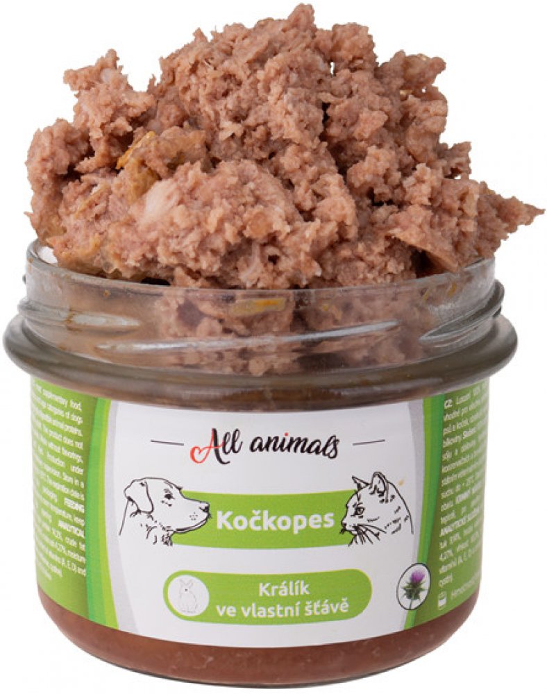 Konzerva ALL ANIMALS Kočkopes králík ve vlastní šťávě sklenička 200g