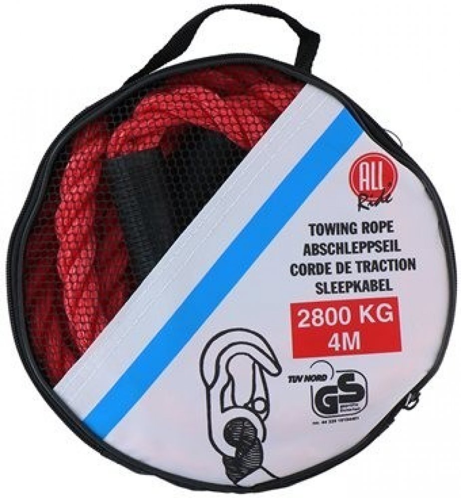 Klasické tažné lano ALLRIDE z umělého materiálu (silon) červené barvy s karabinami na obou koncích. Délka lana je 4 m, max. nosnost 2800 kg. Součástí balení je červený plastový „rukáv“ pro navlečení na lano (upozorňuje na to, že je lano nataženo mezi dvěma automobily). Vše zabaleno v praktické taštičce na zip, v níž se lano po použití snadno schová. Splňuje specifikace Atest 8SD 1244.
