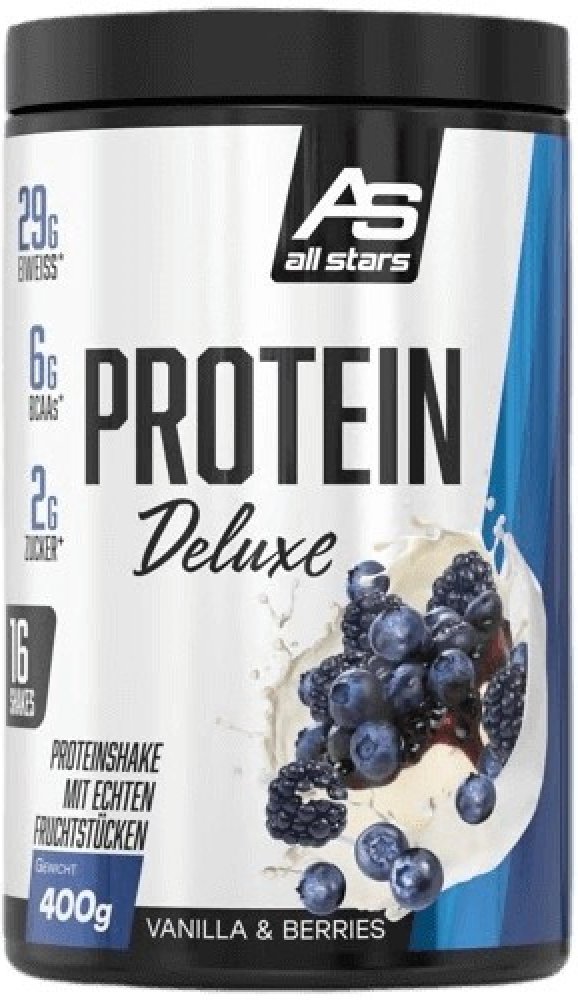 All Stars Protein Hy-Pro Deluxe 500g - vysoce hodnotný protein s lahodnými kousky ovoce, je ideálním zdrojem k zajištění dostatečného příjmu kvalitních bílkovin potřebných k optimálnímu růstu svalové hmoty.