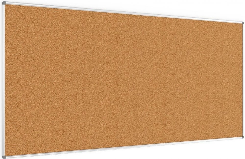 Korková nástěnka v hliníkovém rámu 250x120 cm, vyrobena z korku portugalské výroby na podkladu z dřevovláknité desky. Hloubka tabule je 10 mm a nelze ji probodnout připínáčkem.