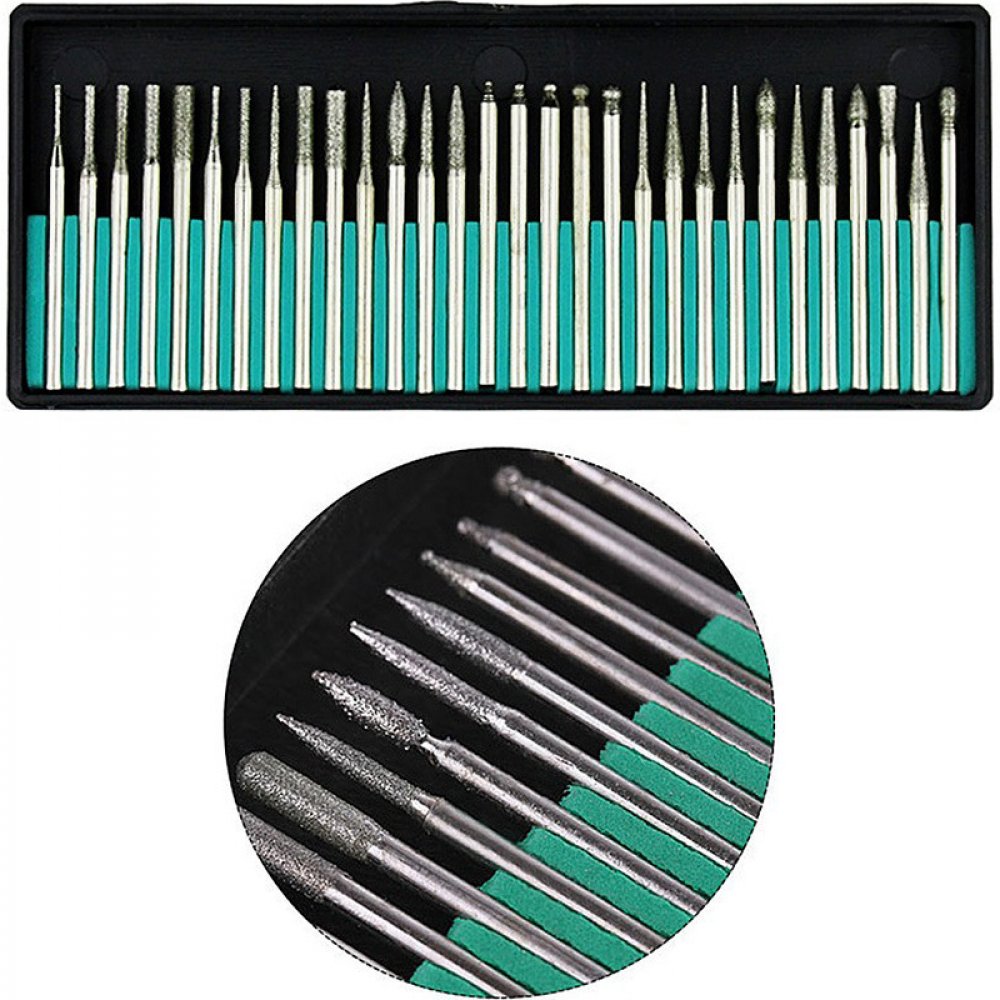Brusné nástavce sada 30ks - univerzální náhradní hlavice do brusky. Průměr upínací části nástavců je 2,35mm, jsou vhodné téměř pro všechny elektrické brusky.