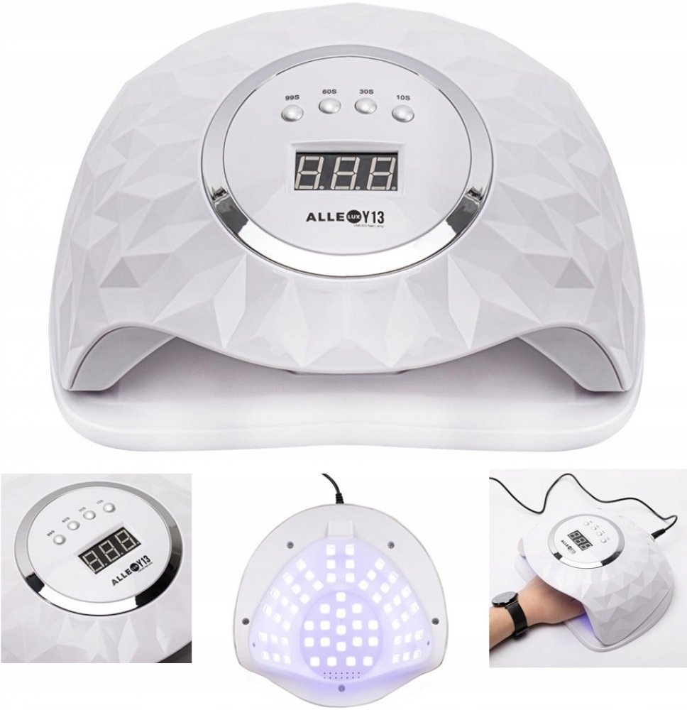 Zde je lampa AlleLux Y13 s obrovským výkonem 248 W a 60 diodami, které pracují ve dvou vlnových rozsazích, aby zajistily dokonalé vytvrzení hybridních laků, gelů a akrylogelu.Lampa na nehty dual UV/LED 248 W pro hybridní laky a gely AlleLux Y13 bílá Bílá