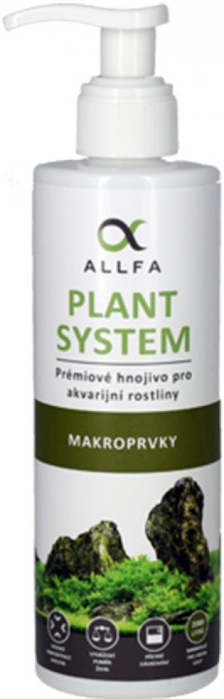 Přípravek doporučujeme používat po každé výměně vody. Týdenní dávku je vhodné rozdělit do několika menších v průběhu celého týdne (např. jedno zmáčknutí pumpičky jednou denně v případě 70 litrového akvária). Vzhledem k vysoké koncentraci živin, doporučujeme používat Allfa Makroprvky podle uvedené tabulky pouze v případech, kdy je dno akvária alespoň z 80 % osázeno rostlinami. Pokud máte v akváriu rostlin méně, doporučujeme snížit dávku (např. o polovinu v případě osázení 40 % dna).