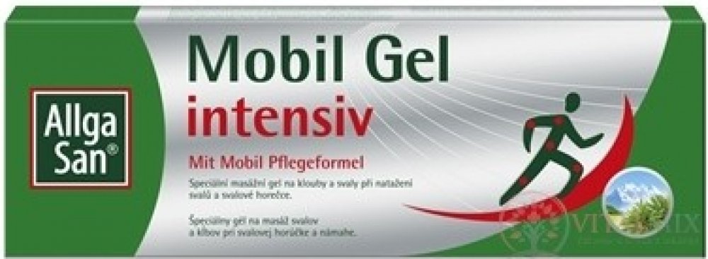 Allga San Mobil gel je speciální přípravek na klouby a svaly při jejich natažení a svalové horečce. Obsahuje přírodní éterické oleje a mentol a kafr. Blokuje bolest, podporuje prokrvení.