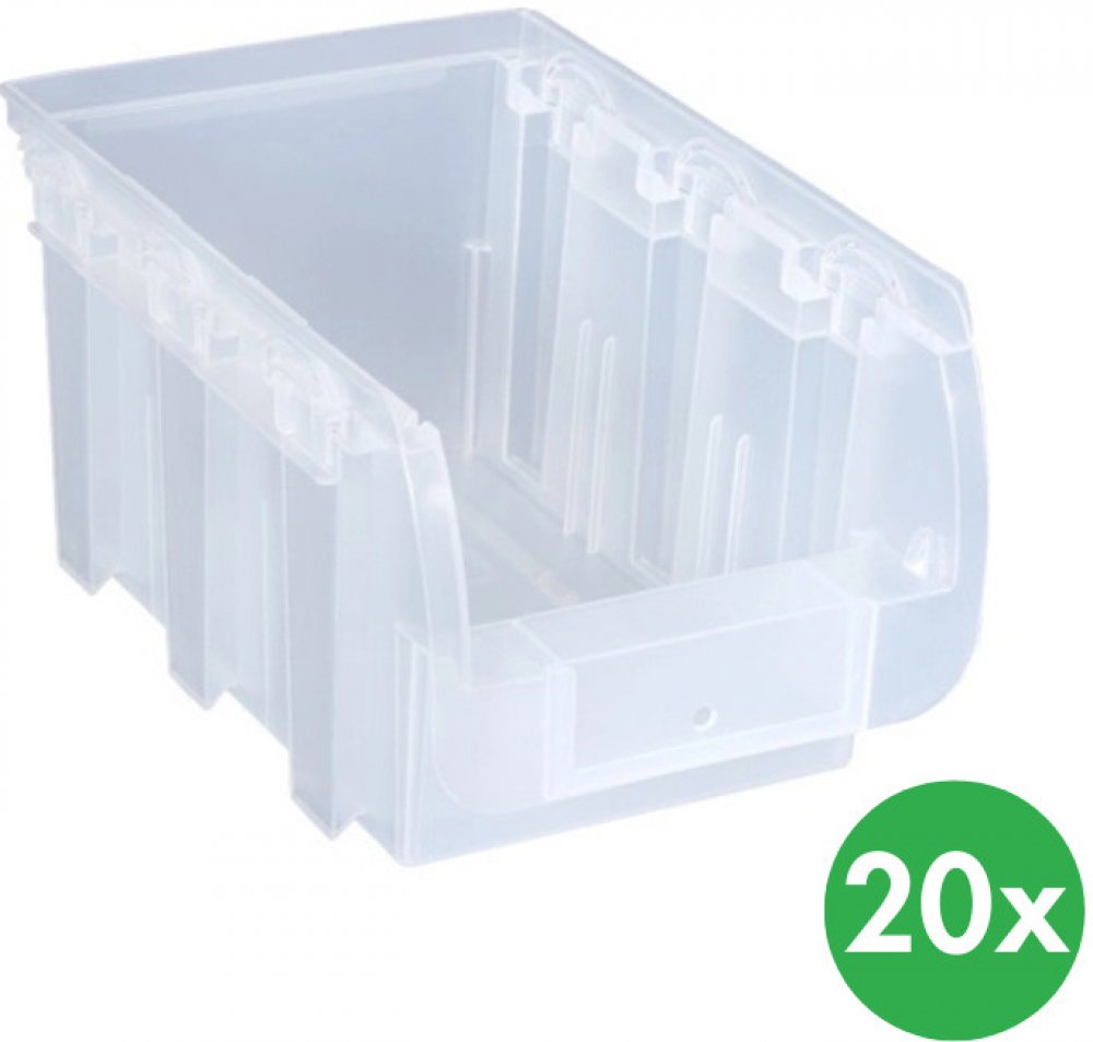 · plastové boxy vhodné pro přehledné skladování a přepravu materiálu a součástek · jsou vyrobeny z polypropylenu a jsou proto odolné vůči, plísním, vlhkosti a agresivním látkám · boxy šířky 154 mm a širší jsou vybaveny unikátními klapkami, kterými můžete nastavit, zda chcete boxy stohovat na sebe nebo zasunout do sebe a ušetřit tak až 40 % prostoru při jejich skladování nebo přepravě · boxy do šířky 154 mm jsou vybaveny závěsem pro zavěšení na kompatibilní plastové stěny nebo kovové lišty · na čelní straně boxů je kapsa pro vložení štítku s popiskem · na výběr červené, modré a průhledné varianty boxů · teplotní odolnost -5 °C až +35 °C · certifikát TÜV · prodej pouze po baleních
