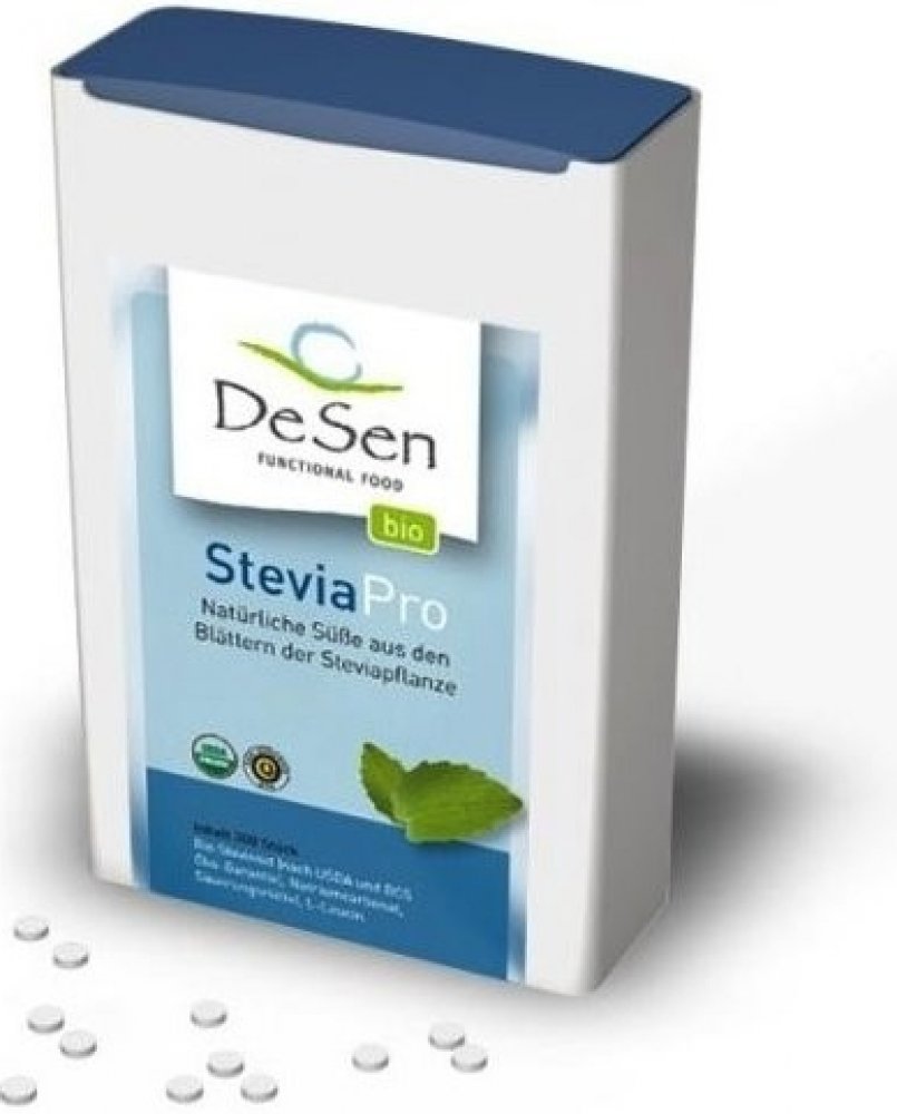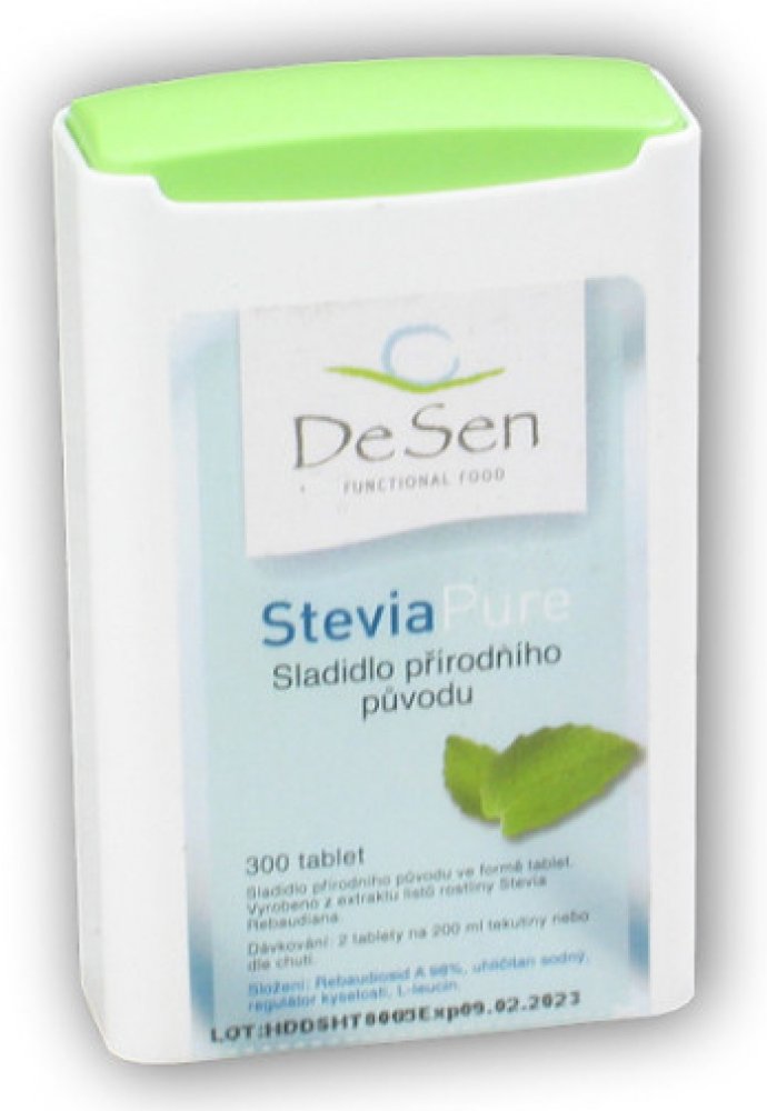 Stévie Desen je přírodní sladidlo vhodné pro diabetiky vyrobené z výluhu listů listů stévie. Je bez kalorií, takže je ideální pomocník v boji s obezitou. Praktické balení obsahuje 300 tablet a každá z nich nahradí jednu kostku cukru.