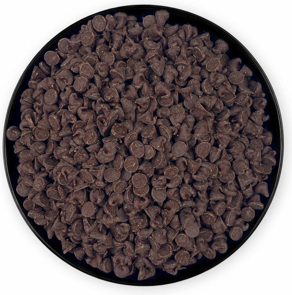 Kvalitní hořká čokoláda s vysokým obsahem kakaa v podobě peciček.