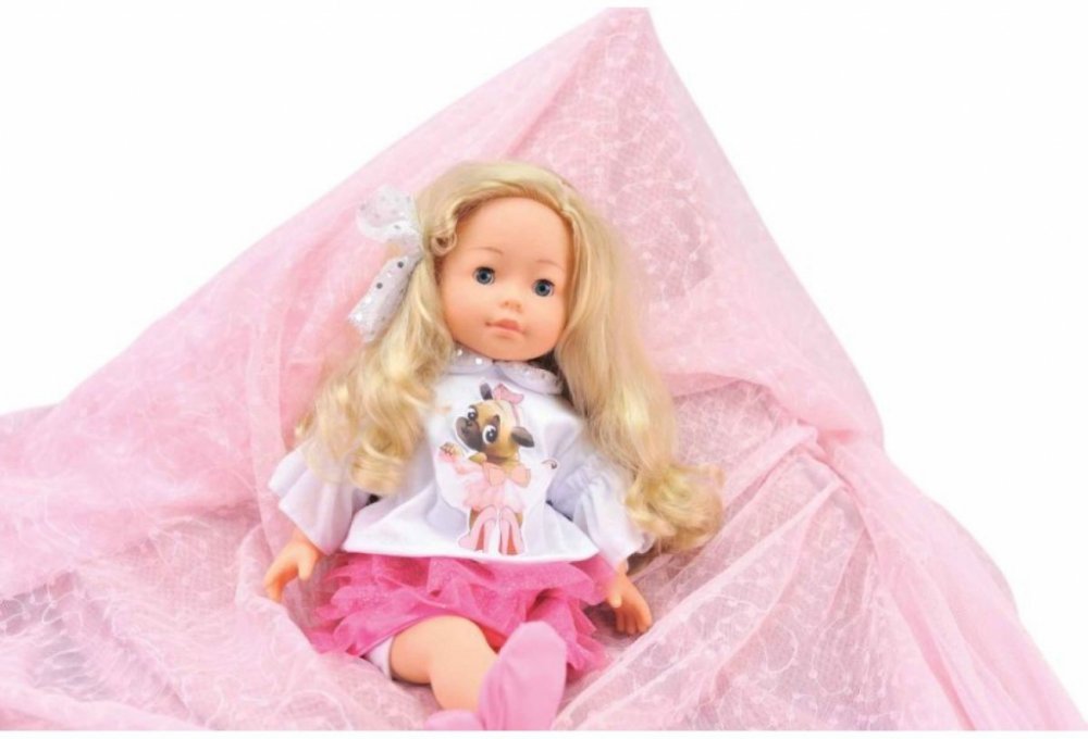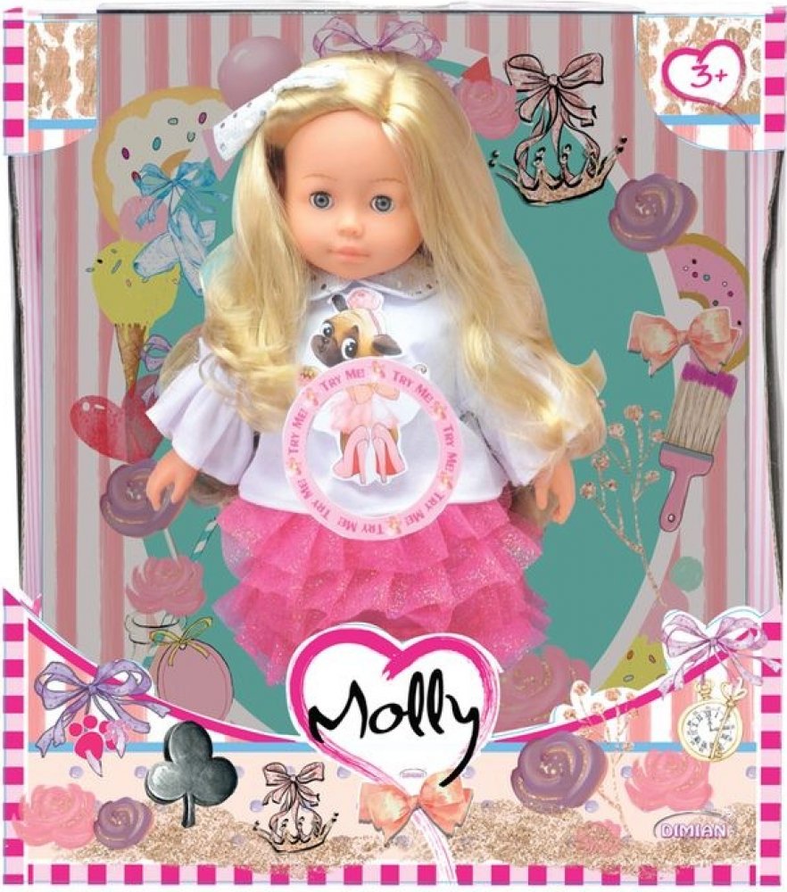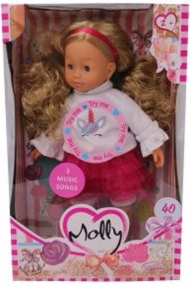 Panenka Molly je krásná 40 cm velká panenka, která je ideální pro děti od 3 let. Má realistickou vinylovou hlavičku, ruce a nohy, což jí dodává autentický vzhled. Molly má mrkací oči a dlouhé, nádherné vlásky, které si děti mohou česat a upravovat. Panenka umí přehrávat 3 písničky, které zpříjemní hru a přinesou radost při každém hraní. Pro funkci panenky jsou potřeba 3× LR44 baterie, které nejsou součástí balení. Panenka Molly je perfektní společník pro kreativní hru a rozvoj jemné motoriky.