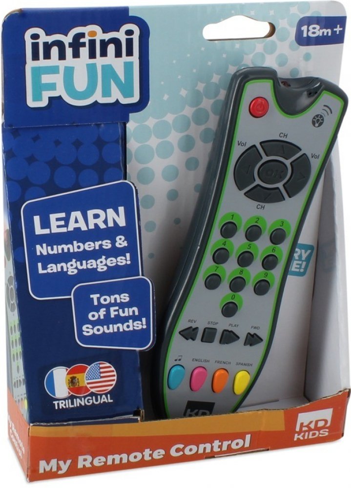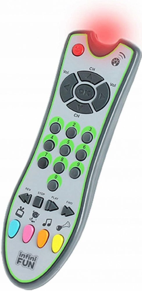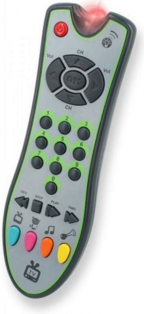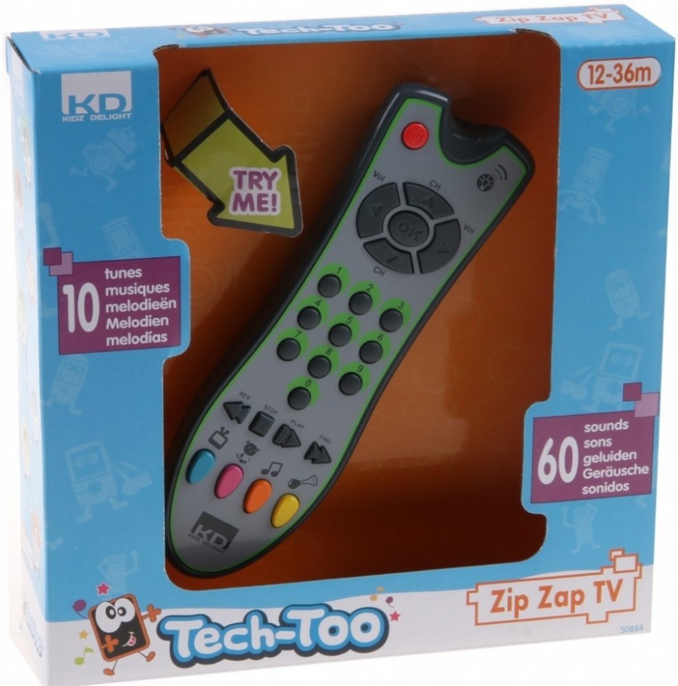 TV ovladač Zip Zap rozvíjí jemnou motoriku, objevuje příčiny a důsledky, zvídavost a vnímání zvuku. Když dítě chce dělat to, co maminka a tatínek – tato hračka mu nahradí skutečný přepínač.Ovladač je se světlem a umí 60 zvuků.10 melodií.4 herní módy. Popis produktu První realistické dálkové ovládání pro děti. Design, barvy a funkce jsou velmi podobné skutečnému dálkovému ovládání. Dálkový ovladač má 24 tlačítek s různými funkcemi. Realisticky vypadající tlačítka reagují na dotyk a mají různé hlavičky: Zábavné zvuky, zvuky zvířat a hudba.
