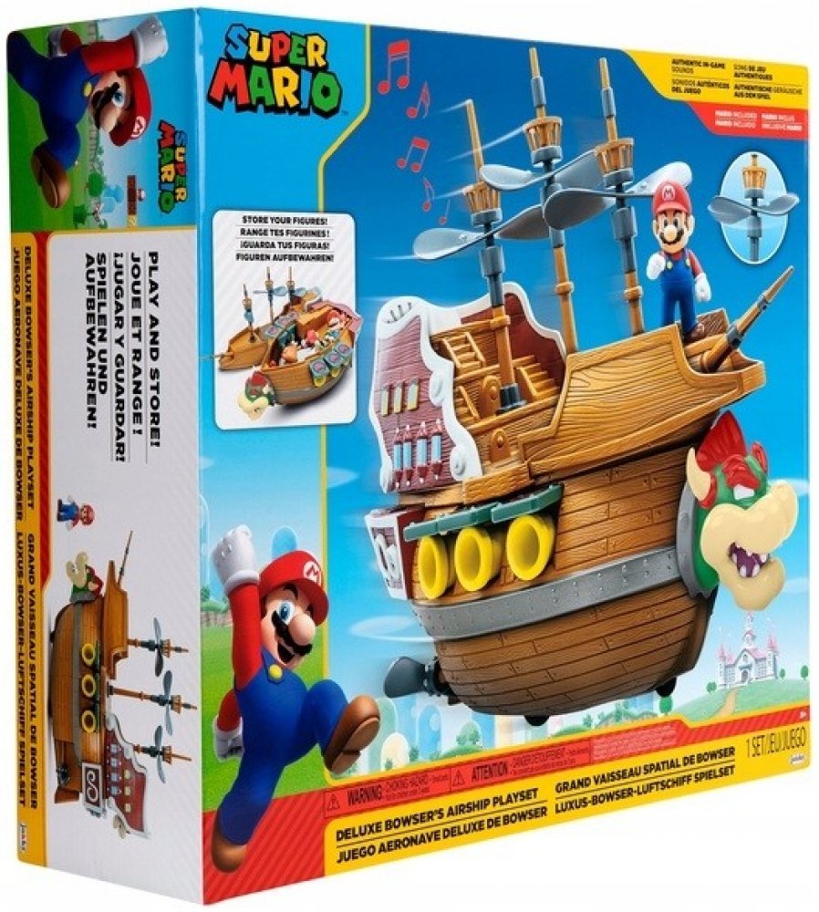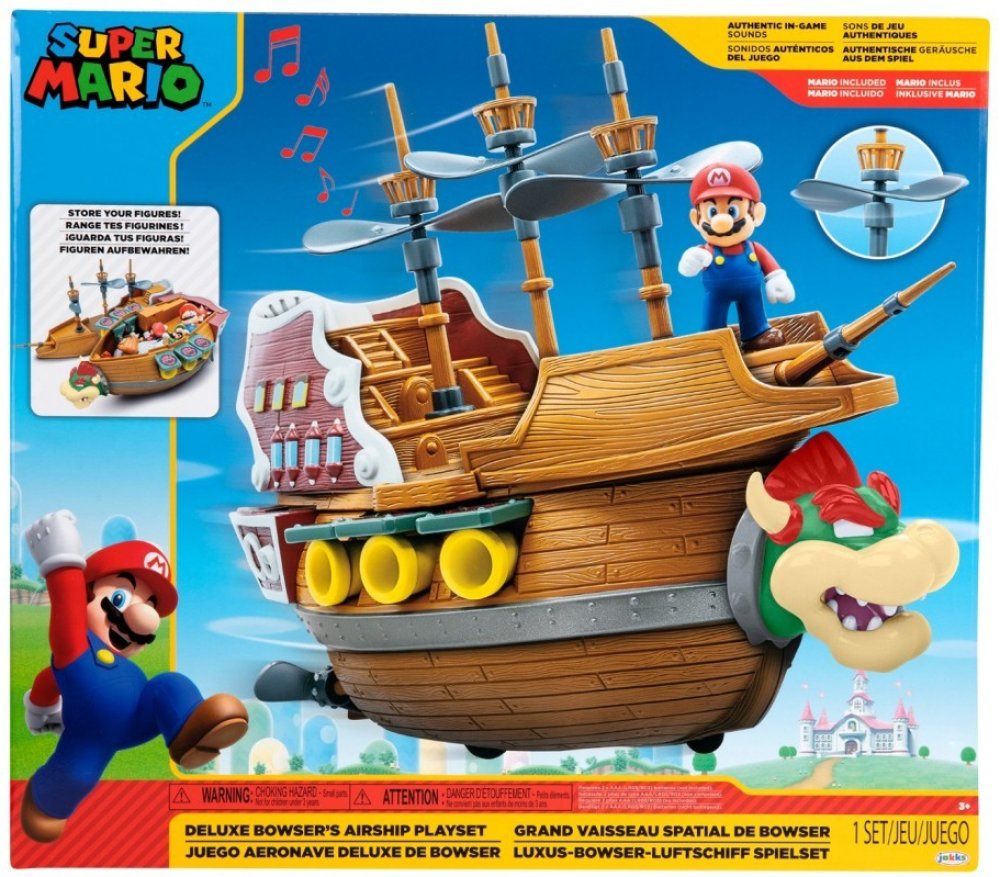 S hračkou Super Mario Bowsers Deluxe Airship v akčním herním setu se zvukem a včetně akční figurky se sny každého fanouška Super Maria stanou skutečností! Hrací sada Super Mario Toy Bowsers Deluxe vzducholoď se zvukem a postavou Bowserova vzducholoď se zvuky a funkcemi, 1 figurka Super Mario