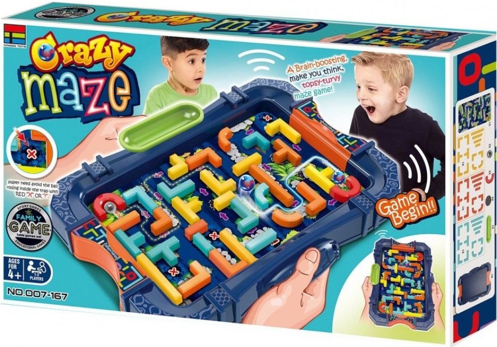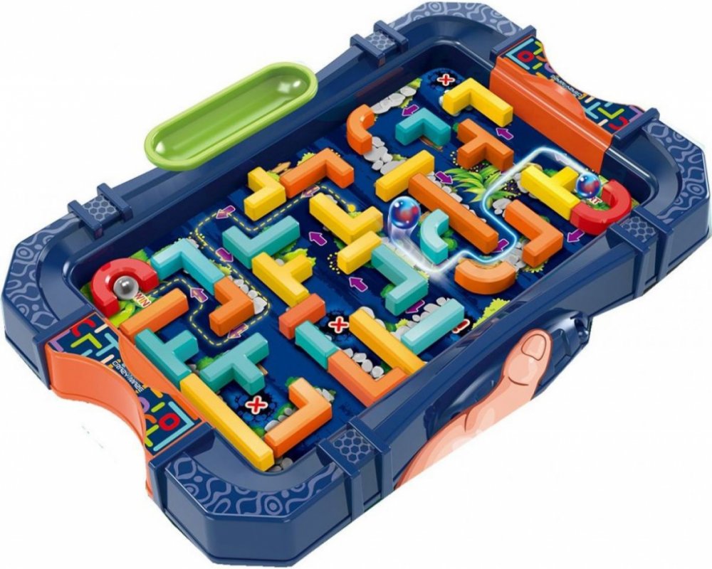 Hra bludiště. Postav si své vlastní bludiště - kuličkovou dráhu a nakláněním herní desky veď kuličku od startu až do cíle. 2 kuličky součástí balení.