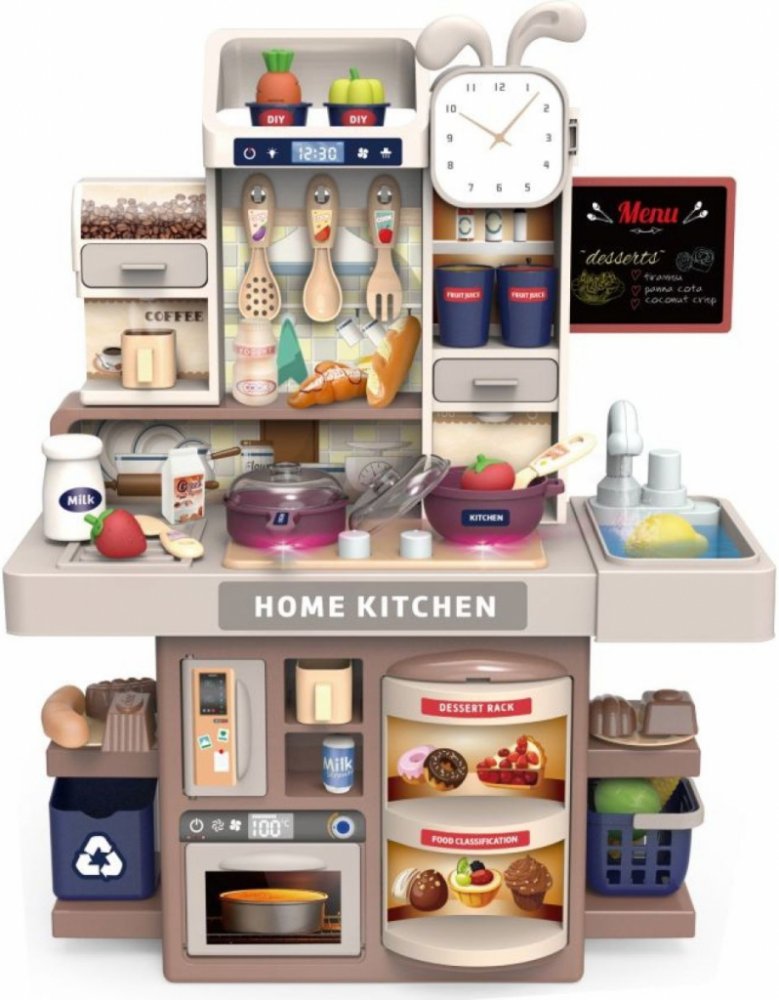 Kuchyňka se světelným efektem. Kuchyňka má otvor na přidání vody a efekt páry, sporák je s efektem mlhy. Voda cykluje z umyvadla zpět do kohoutku. Výrobek rozvíjí jemnou motoriku dítěte a představivost. Věk 3+