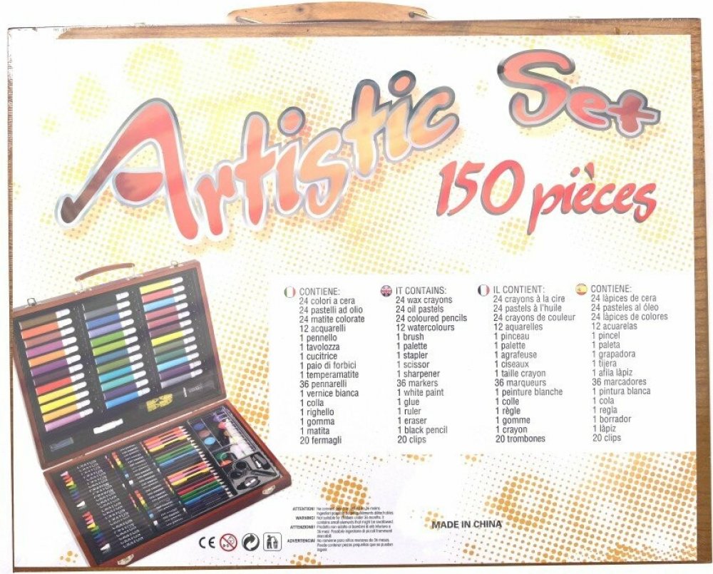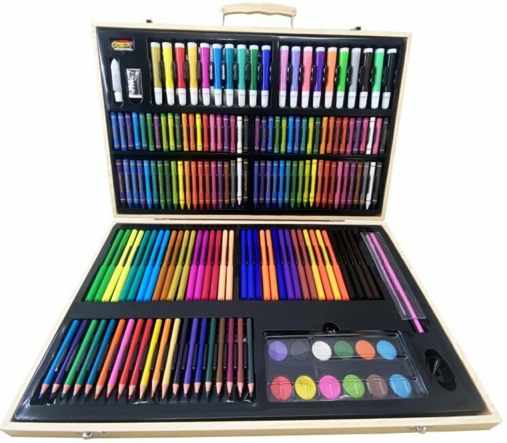 Obsahuje: ✔️ 24 voskovek ✔️ 24 olejových pastelů ✔️ 24 barevných tužek ✔️ 12 akvarelových barev + paleta ✔️ 36 fixek ✔️ Ořezávátko, guma, černá tužka ✔️ Sešívačka, nůžky, lepidlo, pravítko ✔️ 20 spon na papír