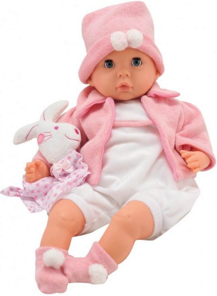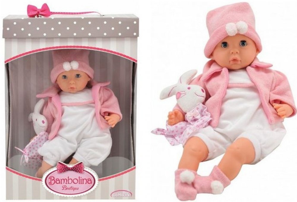 Panenka miminko Bambolina Boutique je krásné miminko s oblečkem, čepičkou a hračkou zvířátkem. Panenka je mrkací.