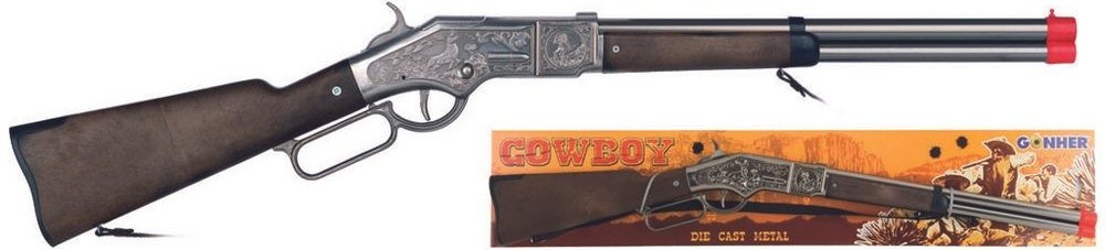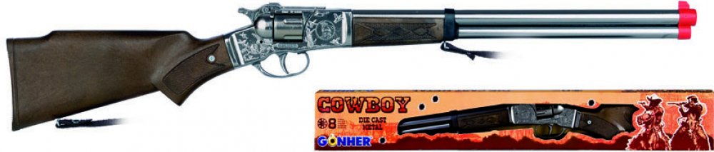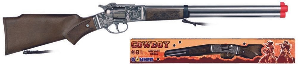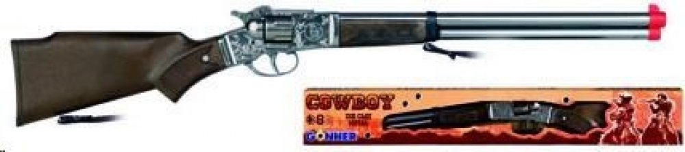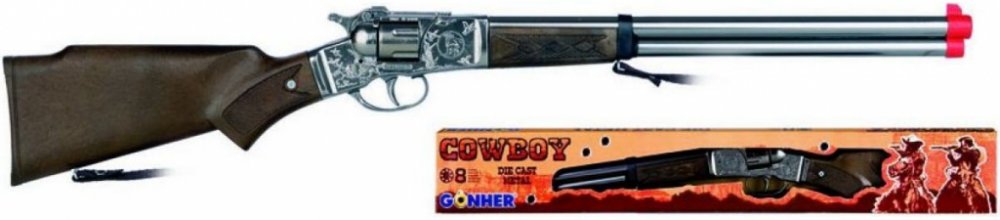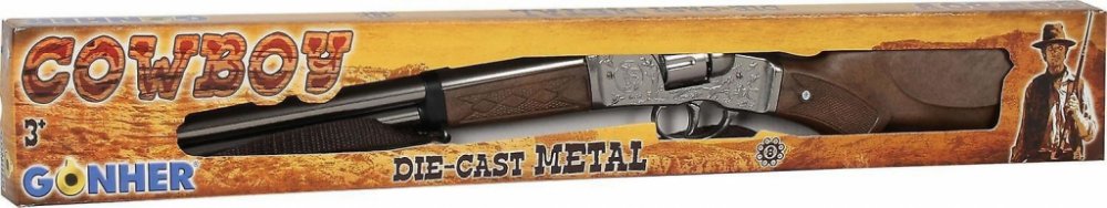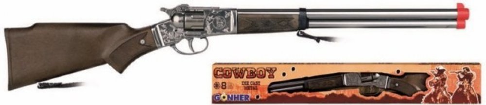 Dětská puška s kovovým tělem a plastovými doplňky nabízí dětem hru na kovboje. Když střelec nabije zbraň kapslíky a stiskne spoušť může vystřílet až 8 ran. Kapslíky se prodávají samostatně.