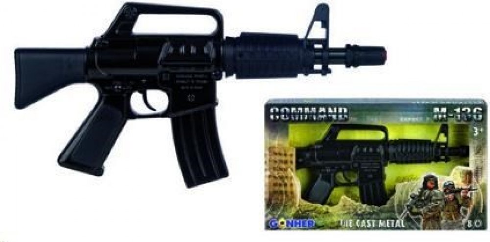 Kovový policejní samopal je určen pro malé malé chlapce, kteří si rádi hrají na vojáky či chtějí vyzkoušet policejníí nasazení v akci.