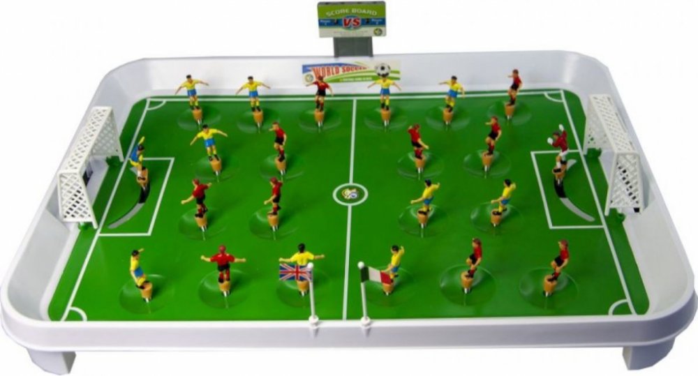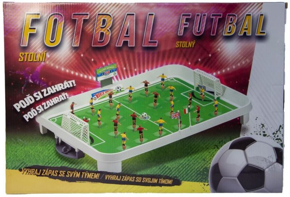Stolní společenská hra oblíbená dětmi i dospělými. Kopaná se dvěma kompletními týmy, náhradními hráči a ukazatelem skóre.