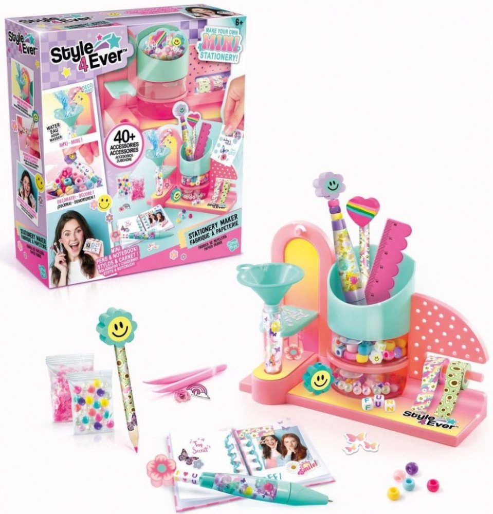 Vybavte si stůl vlastním stolním setem na psací potřeby Style4Ever! Set na tužky si navíc děti mohou ozdobit dle vlastní fantazie, bude tak jedinečný jen pro ně. V balení naleznete stojan na tužky, nálepky, 2 pastelky, 2 vodní pera, 3 sáčky s dekoracemi, 1 zápisník, 3 sáčky s korálky, 4 násadky na pera, 2 gumy, 2 barevné lepicí pásky, 1 pravítko. Fantazii se meze nekladou. Návod naleznete uvnitř b...