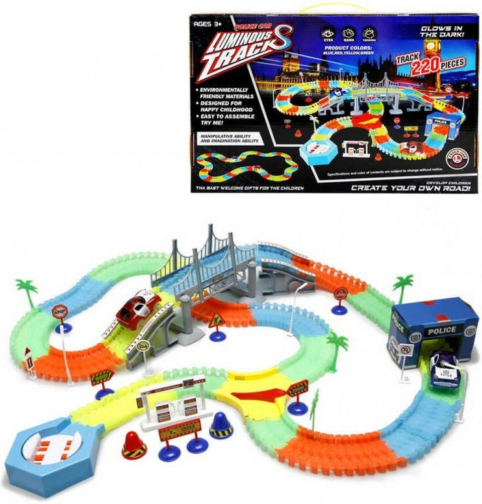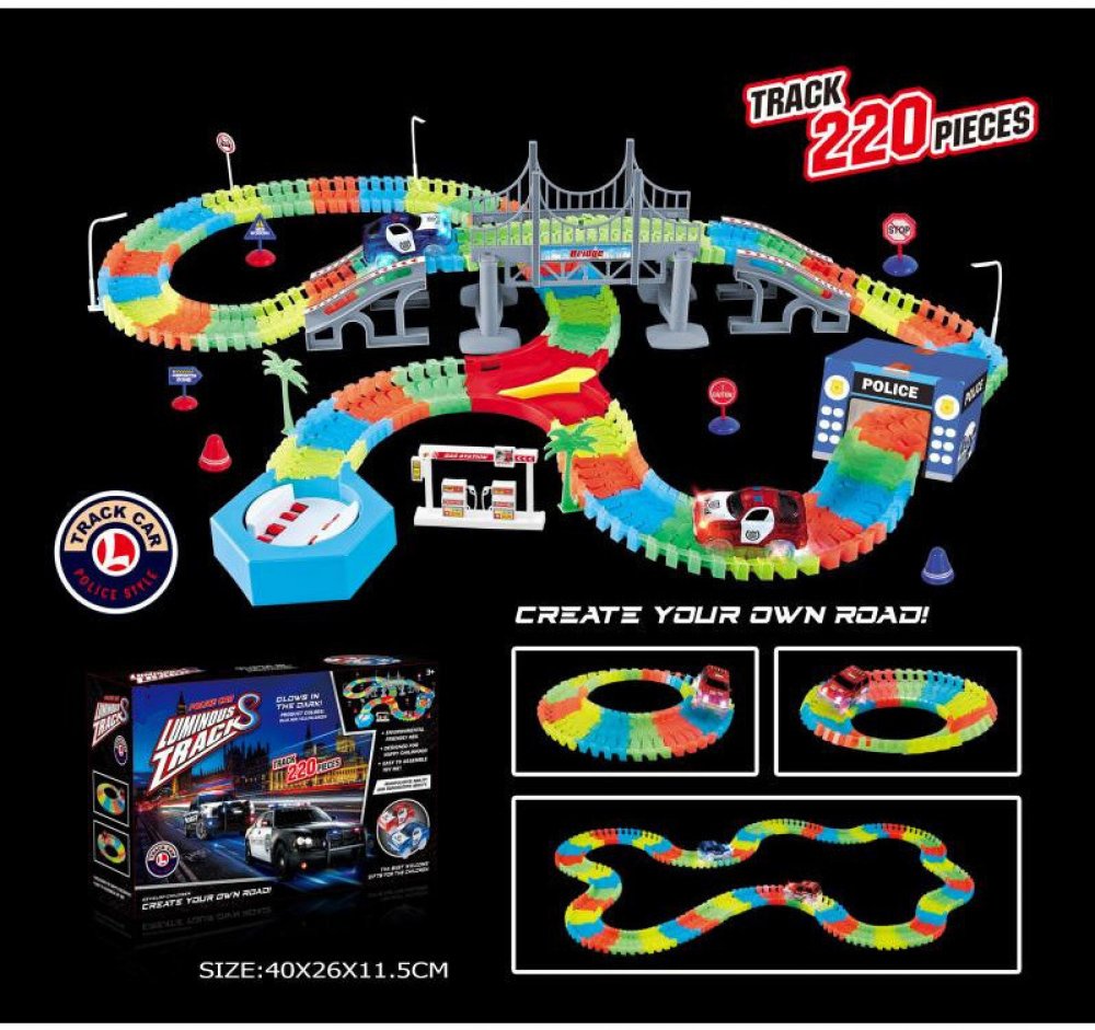 Variabilní dráha svítící ve tmě, která má 220 dílů. Součástí sady je jedno autíčko s LED světlem, přemostění, policejní stanice, benzínová pumpa a jiné doplňky.