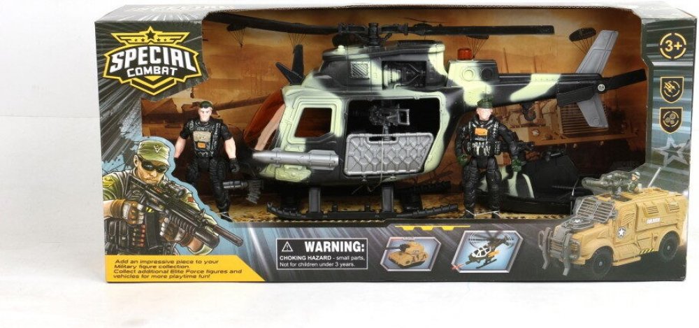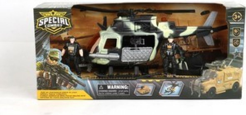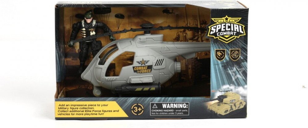 Vojenský plastový herní army set Special Combat. Součástí je vrtulník, figurka vojáka a doplňky (zbraně). Staň se součástí bojové jednotky a vydej se na vítězné tažení. Postav si své bitevní pole, rozmísti vojenskou techniku a vojáky a velká bitva může začít. Tato dětská vojenská sada udělá radost všem klukům, kteří si rádi hrají na vojáky! Teď už tě žádný nepřítel nepřekvapí! Rozměry balení (š v ...