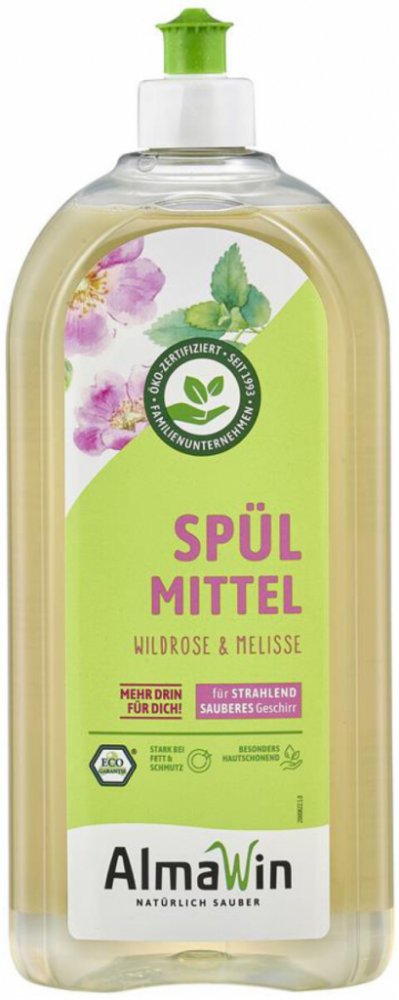 Meduňka má nejen uklidňující účinek, ale svěží, citronově vonící rostlina vás také naladí – právě na mytí nádobí! Prostředek na mytí nádobí AlmaWin Wildrose & Melissa čistí nádobí přirozeně a účinně. Složení bez námahy odstraňuje mastnotu a nečistoty a zanechává nádobí zářivě čisté. Jemný extrakt z meduňky a mýdlových ořechů je šetrný k pokožce i rukám. Květinová vůně esenciálních olejů dělá z oplachování příjemný voňavý zážitek.