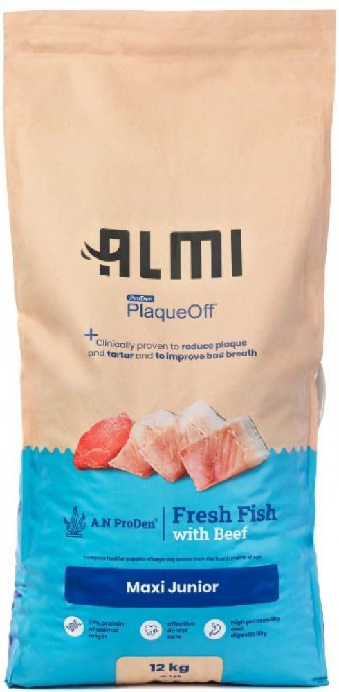 Almi Maxi Junior je kvalitní krmivo určené pro náročné období růstu psů středních a velkých plemen. Obsah živin, vlákniny a antioxidantů je vyvážen tak, aby podporoval vysokou energetickou potřebu, zdravé trávení, vývoj svalů a kloubů i celkovou fyzickou kondici.