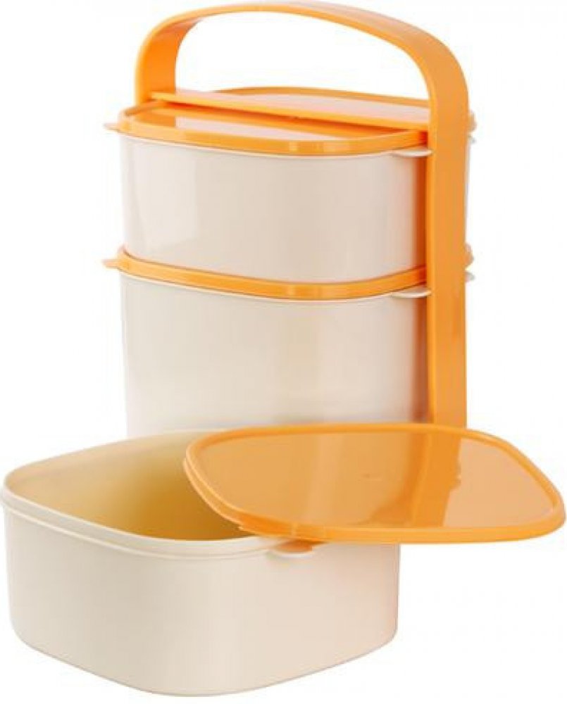 Plastový třípatrový jídlonosič je složený ze dvou menších a jedné větší hranaté misky. Každá miska má své vlastní víčko. Pomocí pevné spony s praktickým uchem se misky na sebe připojí a lépe se s jídlonosičem manipuluje. Jídlonosič perfektně poslouží k přenosu oběda z jídelny či restaurace domu, kde si můžete svou zakoupenou dobrotu v klidu vychutnat. Zároveň si můžete domácí jídlo donést do práce...
