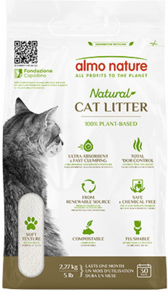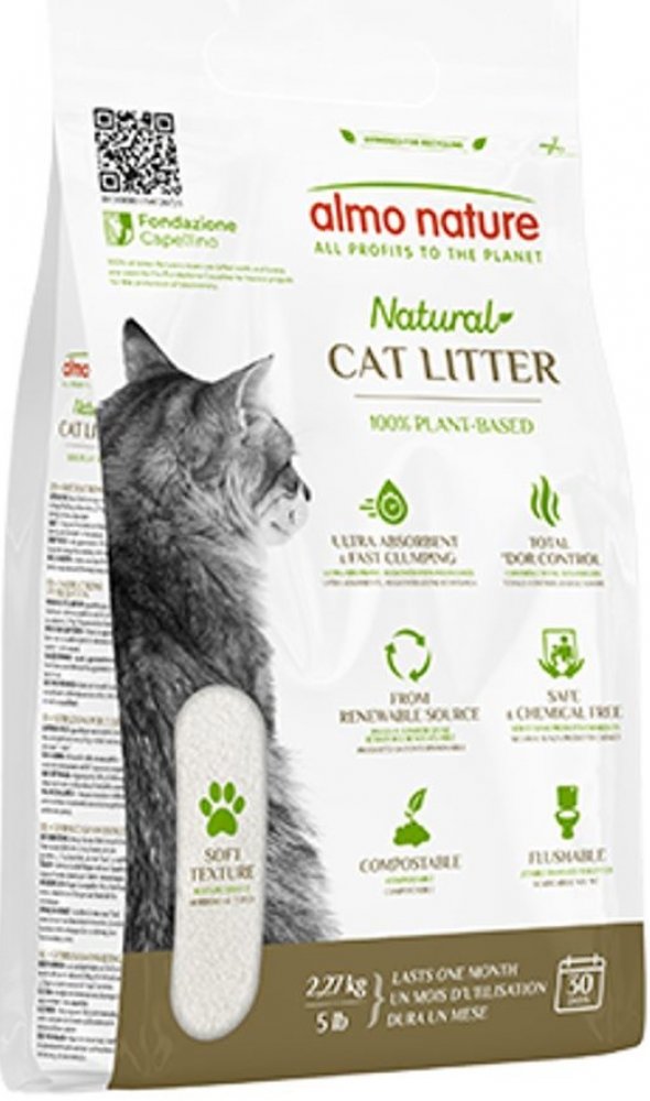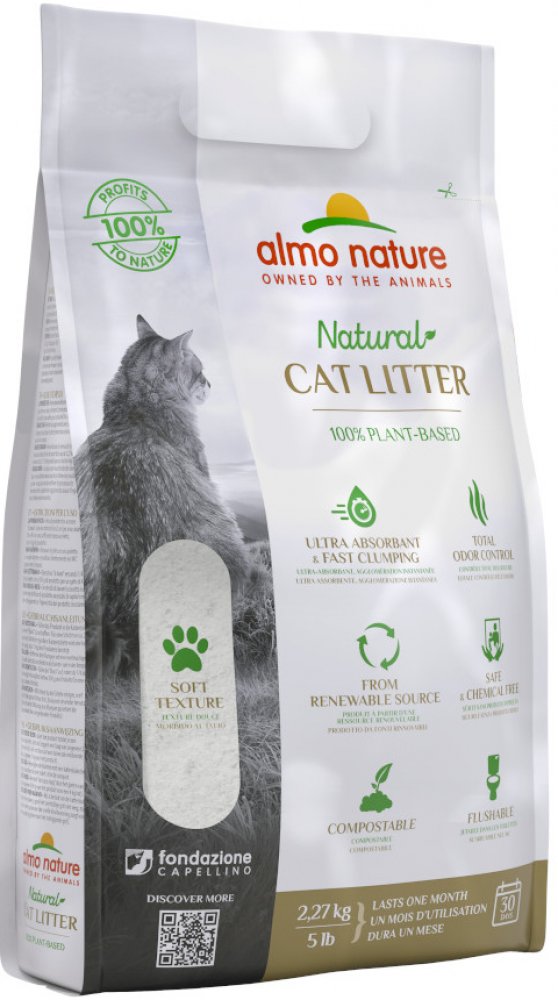 Tento revoluční kočkolit spojuje pohodlí, účinnost a šetrnost k životnímu prostředí: Je vyroben z rostlinných vláken, která zajišťují velmi rychlou tvorbu hrudek. Enzymy zároveň spolehlivě neutralizují nepříjemné pachy. Moč Vaší kočky se okamžitě zhutní na povrchu, toaleta a zbývající kočkolit zůstanou čisté. Protože je stelivo Almo Nature Cat Litter zcela přírodní, netoxické a biologicky odbouratelné, lze ho vyhodit do kompostu. Obzvláště praktické: Rychle se rozpouští ve vodě, a proto jej lze snadno spláchnout do toalety! Kočkolit Almo Nature neobsahuje prach, oxid křemičitý, jíl a syntetické chemikálie. Nicméně chytrý kočkolit nabízí velmi účinný a zároveň úsporný způsob, jak udržet klidné místečko Vašeho chlupáče hygienicky čisté. Nejdříve do toalety nasypte vrstvu vysokou asi 2 cm jako základ. Poté lze očekávat spotřebu pouze asi 500 g týdně, protože je třeba odstranit pouze hrudky, nikoli všechen kočkolit. A protože je tento přírodní produkt také mimořádně jemný, je šetrný i k citlivým tlapkám. Geniální novinka od společnosti Almo Nature pro všechny, kteří hledají levný a praktický kočkolit, který zároveň chrání životní prostředí! Almo Nature Cat Litter: Přírodní stelivo pro kočičí toalety Vyrobeno z rostlinných vláken: vysoce účinné, s rychlým hrudkujícím účinkem a vynikající kontrolou zápachu Kompostovatelné: šetrné k životnímu prostředí, plně biologicky rozložitelné Lze spláchnout v toaletě: nekomplikované a hygienické, hrudky se rychle rozpouštějí ve vodě, nehrozí ucpání Vysoká absorpční schopnost: tekutina se rychle spojí v pevnou hmotu Zastavení zápachu: enzymy neutralizují nepříjemné pachy Bezprašné a netoxické: bez prachu, oxidu křemičitého, jílu a syntetických chemikálií Obzvláště šetrné i k citlivým tlapkám Úsporné použití: moč se na povrchu rychle zhutní, zbylé stelivo zůstane čisté a lze jej znovu použít, stačí pouze asi 500 g na týden* Revoluční novinka: chytře kombinuje komfort, účinnost a ochranu životního prostředí * Informace výrobce: Průměrná spotřeba pro kočku o hmotnosti 4 kg na toaletě o rozměrech cca 30 x 40 cm
