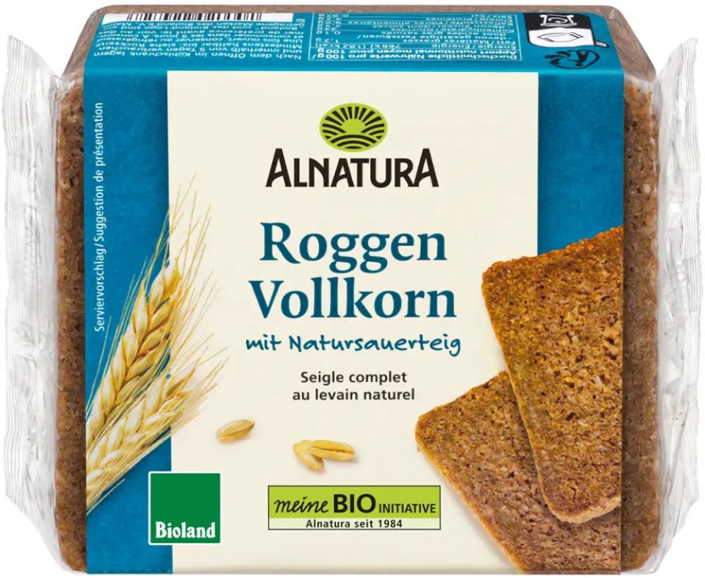 Tento šťavnatý bio celozrnný žitný chléb má výraznou aromatickou chuť. Hodí se zejména ke slaným přílohám, jako jsou sýry, salámy a samozřejmě zeleninové pomazánky. Celozrnný žitný chléb Alnatura je vyroben z celozrnné mouky a přírodního kvásku podle směrnic Bioland, má vysoký obsah vlákniny a je již předem nakrájený.