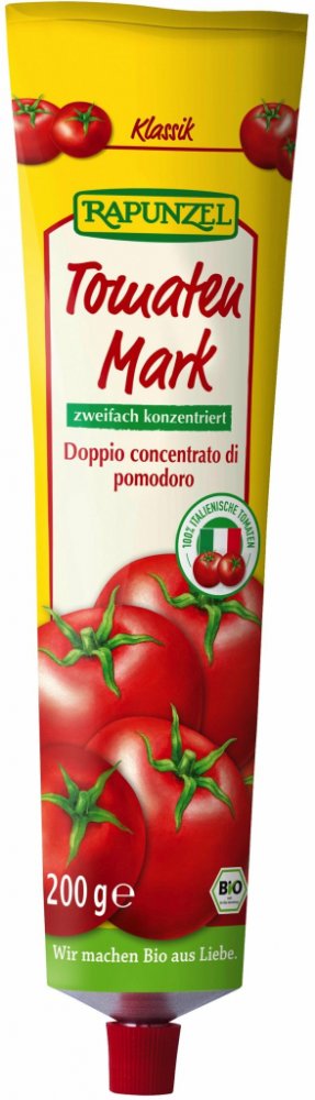 Na výrobu tohoto protlaku byla použita rajčata odrůdy Mauro Roso, vyšlechtěná tradičními postupy přímo pro použití v ekologickém zemědělství. Tato rajčata uzrála ve slunečné Umbrii a po sklizni byla rychle zpracována. Výrobce protlaku totiž používá pouze plody, které vyrostly na jeho vlastní ekofarmě. Rajčata se tak nemusí po sklizni dálkově transportovat a výrobce má dokonalou kontrolu nad tím, jaké plody při výrobě používá. Během šetrné přípravy si protlak uchovává přírodní chuť a vůni. Neobsahuje přidaný cukr ani zahušťovací látky. Výrazná plná chuť je daná tím, že je protlak dvakrát zahušťovaný a obsahuje tedy více sušiny než RAPUNZEL protlak ve skle (28 % oproti 22 %). Tento rajský protlak je ideálním základem rajčatových omáček na těstoviny, klasické rajské omáčky, rajské polévky a dipů, podkladem na pizzu a součástí marinád a zeleninových směsí.