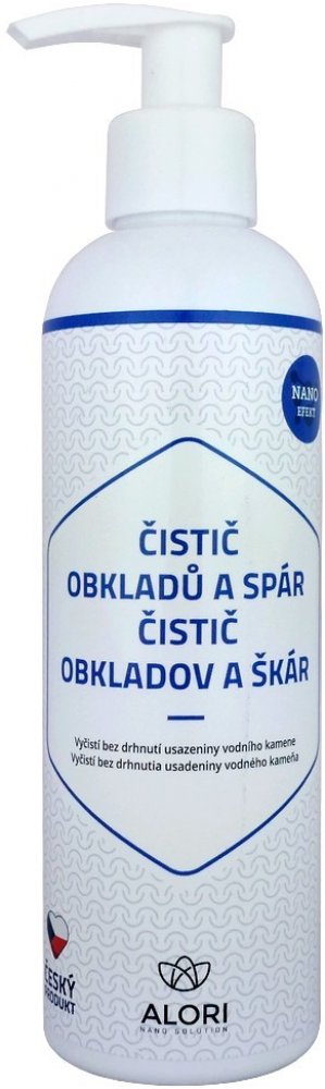 TIP: Aby se vodní kámen a nečistoty znovu neusazovaly, použijte „Alori balíček ochrana obkladů a dlažby“. Ten obsahuje 1x Čistič vodního kamene díl A 250ml + 1x Nano ochrana obkladů a dlažby díl B 100ml + 1x Čistič impregnovaných povrchů díl C 250ml. Aplikace zajistí vytvoření neviditelné ochranné nano vrstvy na povrchu. Tato vrstva zabrání usazování vodního kamene a nečistot má antibakteriální a samočisticí účinek. Při správné údržbě vydrží tato ochrana minimálně 12 měsíců a déle