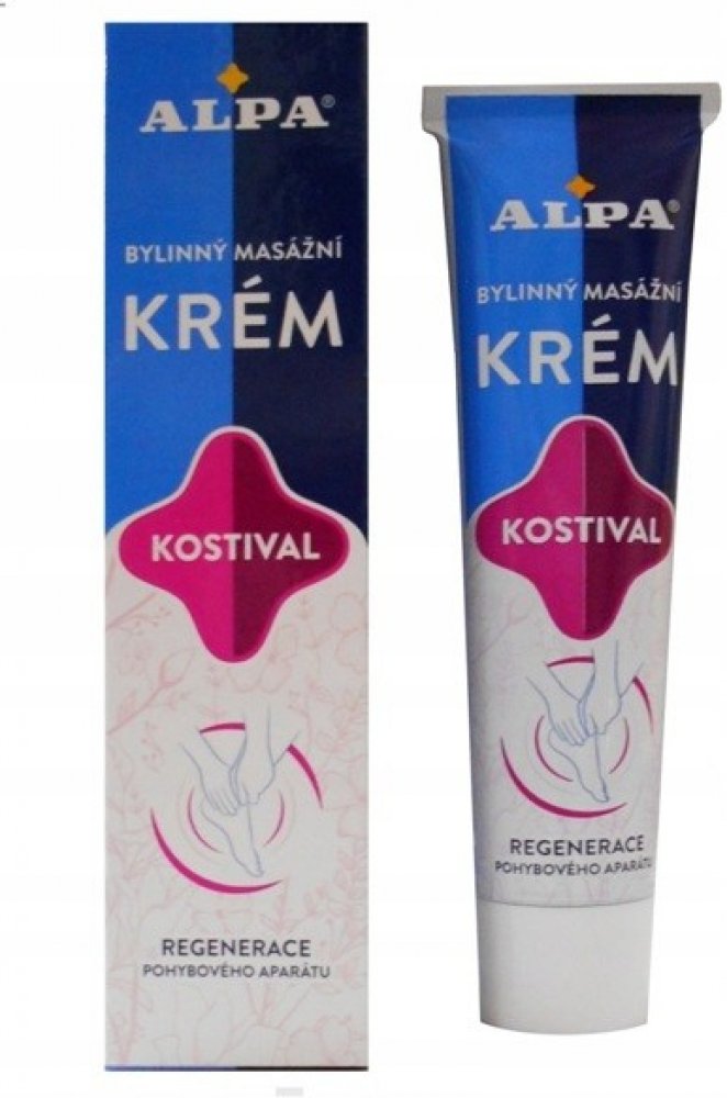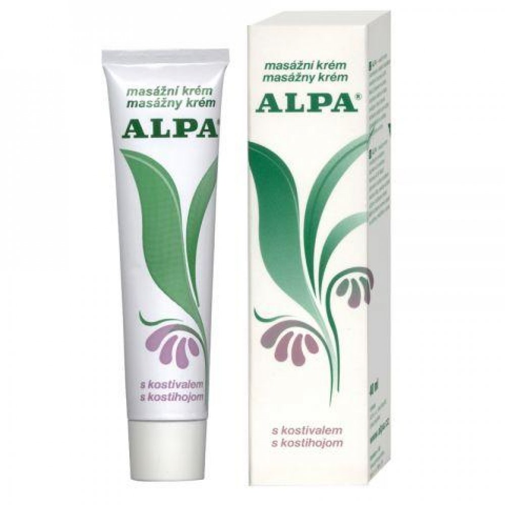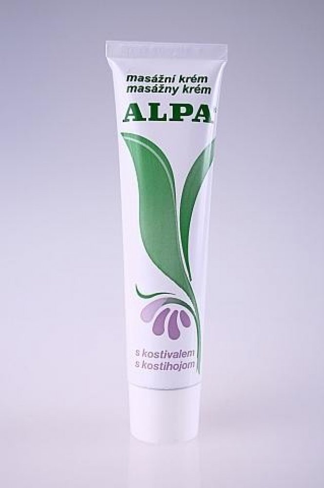 Alpa masážní krém s kostivalem zmírňuje bolesti a podporuje regeneraci tkání.