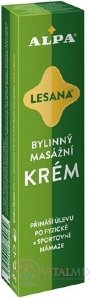 Alpa masážní krém lesana vhodný k masážím celého těla je tradiční přípravek s obsahem silice sibiřské jedle. Díky svému složení přináší úlevu při tělesné únavě, nachlazení, bolesti hlavy a podobných problémech. Krém je ideálním doplňkem již osvědčené francovky ALPA.