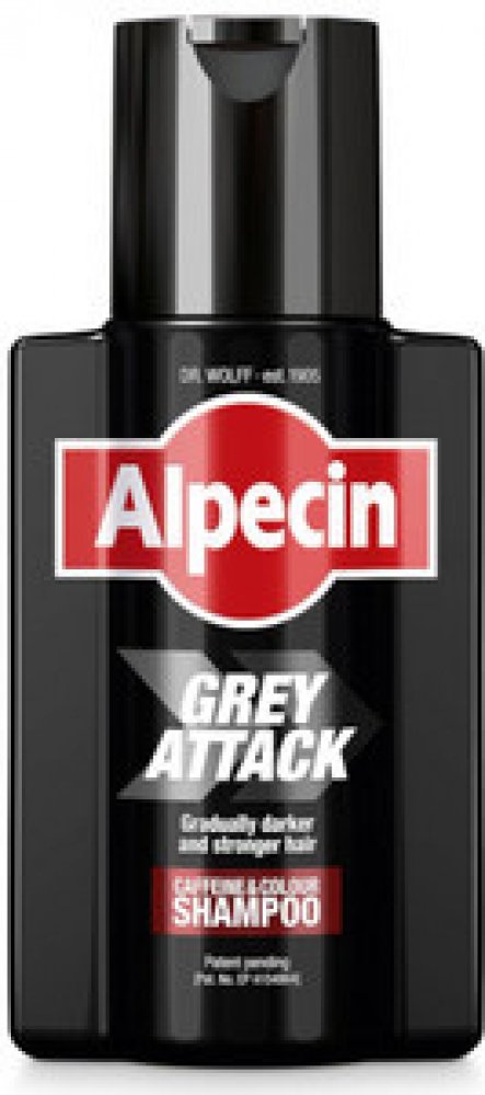 Alpecin Grey Attack Šampon s kofeinem a barvami 200 mlPostupně tmavší a silnější vlasyPřirozeně vypadající barevný efekt pro méně šedinInovativní účinná látka: patentovaná recepturaSnadné použití s dobou aplikace pouhých 2 - 5 minIdeální od prvních šedinSilnější vlasy díky kofeinuPro všechny muže, kteří chtějí něco udělat se svými (prvními) šedinami. Alpecin Grey Attack, nový šampon s kofeinem a barvou, umožňuje snadné postupné opětovné ztmavnutí vlasů během pouhých dvou až pěti minut ve sprše - s obzvláště přirozeným barevným efektem!Inovativní technologie repigmentace je založena na patentovaném aktivním principu: účinná látka 5,6-DHI se během šamponování hromadí ve vlasech a reaguje s kyslíkem ve vzduchu za vzniku barevného pigmentu. Ten postupně ztmavuje barvu vlasů. Vzniká trvalá barva vlasů, která vyrůstá spolu s vlasy.Známý kofeinový komplex navíc chrání před předčasným vypadáváním vlasů tím, že dodává vlasovým kořínkům růstovou energii.Použití:Nechte působit na pokožku hlavy 2-5 minut každý den - od aplikace až po opláchnutí. Platí: Delší doba aplikace zvyšuje barevný efekt! Po dosažení požadovaného barevného výsledku lze šampon používat střídavě s běžným šamponem pro udržení barevného tónu. Dobu působení lze tedy řídit dobou působení a frekvencí používání.Aktivní složky:Kofein, 5,6-DHI, zinek, niacinamidAQUA, SODIUM LAURETH SULFATE, SODIUM COCOAMPHOACETATE, COCAMIDOPROPYL BETAINE, PANTHENOL, CAFFEINE, SODIUM CHLORIDE, COCO-GLUCOSIDE, GLYCERYL OLEATE, PEG-120 METHYL GLUCOSE DIOLEATE, HC BLUE NO. 2, MENTOL, POLYQUATERNIUM-7, DIHYDROXYINDOL, KYSELINA CITRONOVÁ, NIACINAMID, PCA ZINKU, SÍRAN SODNÝ, FENOXYETHANOL, BENZOAN SODNÝ, PARFÉM, LIMONEN, CI 19140. Šampon Alpecin Grey Attack Caffeine & Colour posiluje intenzitu barvy a je ideální pro první šediny. - Kofein posiluje vlasy - Pro přirozený barevný efekt [Použití] Vmasírujte do vlhkých vlasů a nechte působit 2 až 5 minut, poté opláchněte. Složení aqua, sodium laureth sulfate, sodium cocoamphoacetate, cocamidopropyl betaine, panthenol, caffeine, sodium chloride, coco-glucoside, glyceryl oleate, peg-120 methyl glucose dioleate, hc blue no. 2, mentol, polyquaternium-7, dihydroxyindol, kyselina citronová, niacinamid, pca zinku, síran sodný, fenoxyethanol, benzoan sodný, parfém, limonen, ci 19140 Šampon Alpecin Grey Attack s kofeinem a barvou nabízí inovativní řešení pro postupně tmavší a silnější vlasy. Tento šampon dosahuje kontrolovaného a přirozeného barevného výsledku a zároveň bojuje proti vypadávání vlasů. Díky speciálnímu komplexu účinných látek s kofeinem a pigmenty kompenzuje šampon Alpecin Grey Attack přirozenou ztrátu pigmentu u šedivých vlasů. Vlasy postupně ztmavnou a zesílí, což vede k jejich vitálnějšímu a mladistvějšímu vzhledu. Účinné složení šamponu s kofeinem stimuluje vlasové kořínky, podporuje růst vlasů a účinně působí proti jejich vypadávání. Šampon zároveň jemně čistí pokožku hlavy a vlasy, aniž by je vysušoval, a dodává vlasům zdravý vzhled. Alpecin Grey Attack Coffein & Color Shampoo (200ml flakon) Doplněk pro vaše zdraví a tělo Alpecin Grey Attac šampon, 200 ml postupně tmavší vlasy